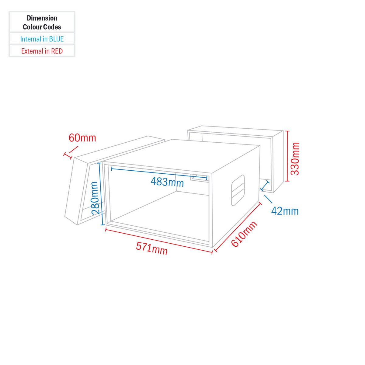 - External dimensions (H x W x D): 330 x 571 x 610mm