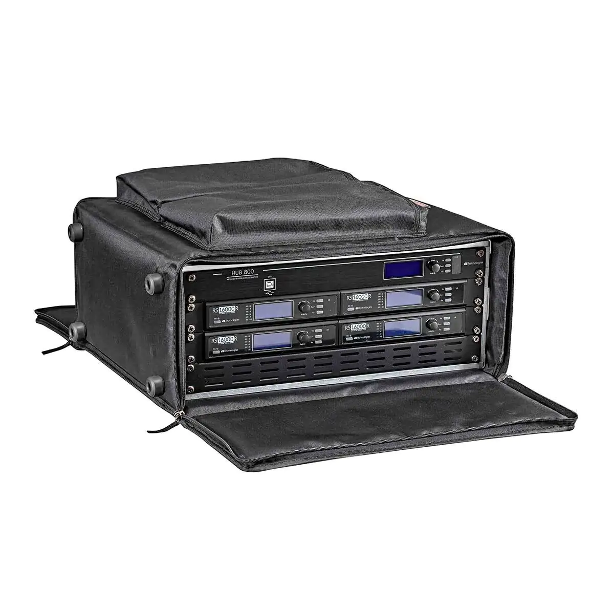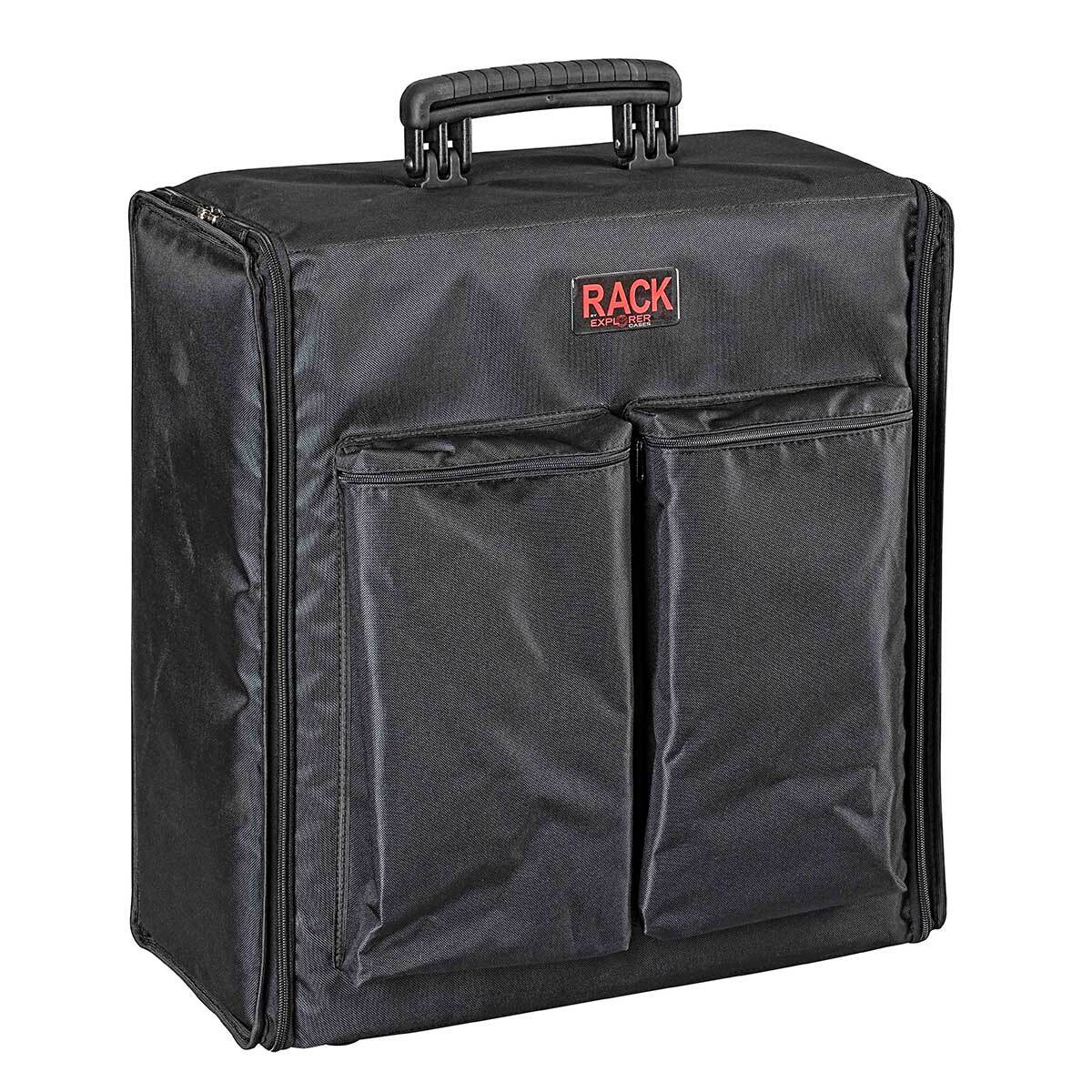 The Explorer 4U Soft Rack Bag is a lightweight, high quality padded bag with integrated 19 inch mounting hardware. It features convenient front pockets for cable storage and a carry handle. The rack case can easily come a backpack by fixing the Explorer BACKPACK KIT.
