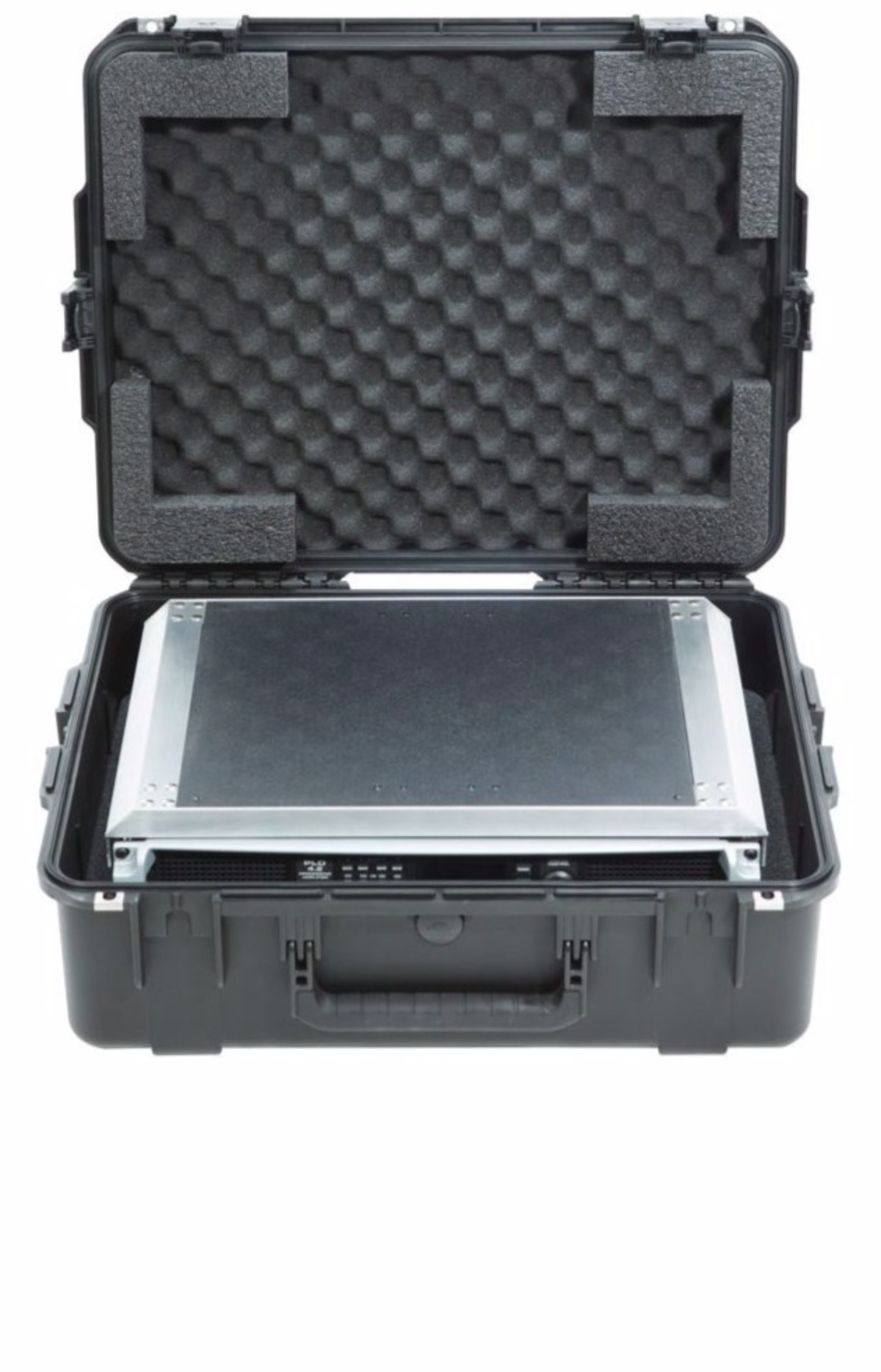 SKB's Fly Racks, innovative line of ATA Removable Shock Racks have revolutionized the way you travel and protect delicate electronics and guitar amps with 2U, 3U and 4U models.The internal Fly Rack frames are made in Orange, California and built of high strength, lightweight aluminum alloy and 11 gauge hot rolled carbon steel rack rails just like the Military Grade Shock Racks. The internal frame contains front and rear rack rails with a 13" rack depth. ABS plastic covers the top and bottom of the removable shock rack for added protection when the rack is out of the case. The rack frame easily fits into SKB's iSeries case that is protected by high quality PE foam that provides space for protruding knobs and buttons. iSeries Watertight cases are lightweight and under 62 linear inches to keep from being oversized. The perfect solution when flying or shipping delicate equipment. Fly Racks are less than half the weight of standard shock racks.iSeries injection molded waterproof cases are constructed of ultra high-strength polypropylene copolymer resin and feature a gasketed, waterproof and airtight, submersible design (IP67) that is resistant to corrosion and impact damage. Its molded-in hinges, TSA acceptable trigger release latch system, comfortable, snap-down rubber over-molded cushion grip handle, secure stacking, and automatic ambient pressure equalization valve (MIL-STD-648C) all contribute to its military grade design.