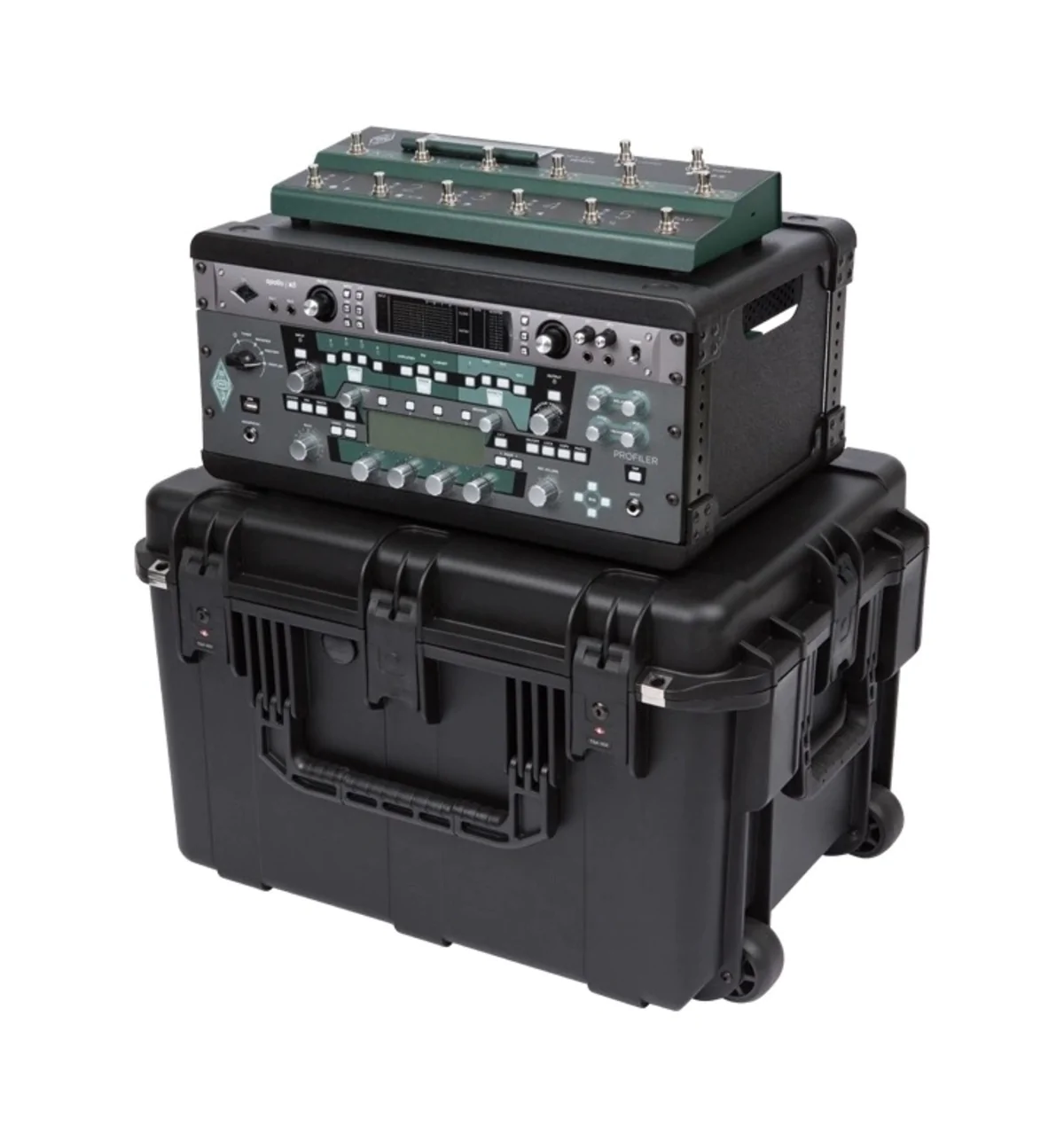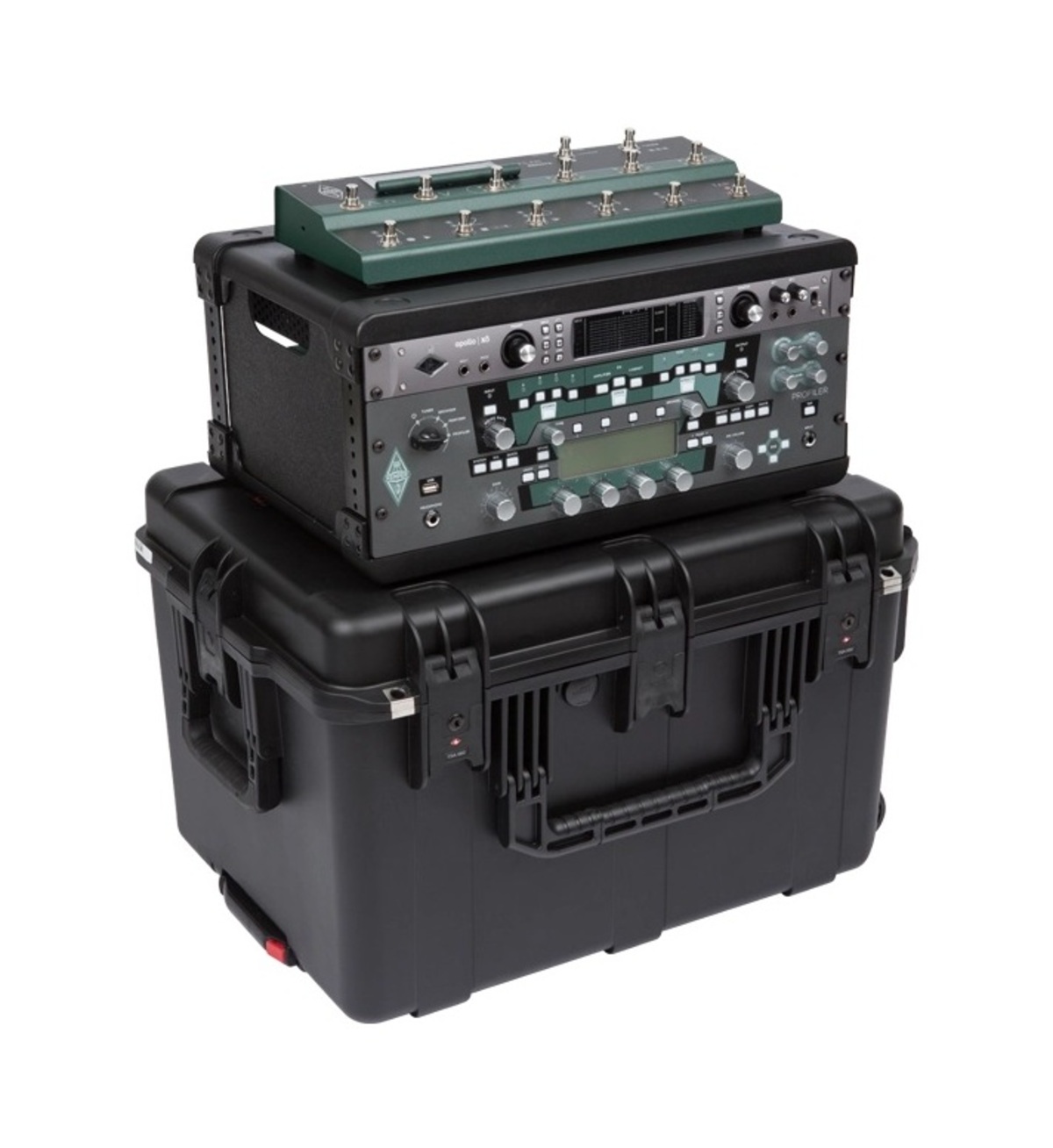 This case was designed specifically for the Kemper Profiler and Line 6 Helix rackmount processors and foot controllers. The top tray features robust ABS plastic and high density foam, with precut holes to perfectly match the foot controller feet and prevent movement or shifting within the case. Below the top tray is a 4U injection molded rack frame that can hold the guitar processor with one additional space for a power supply, recording interface, or other equipment.